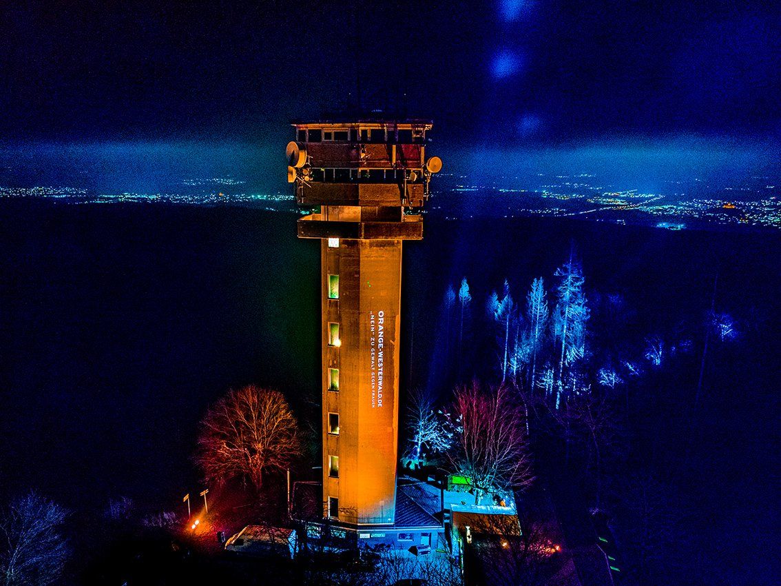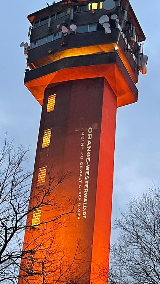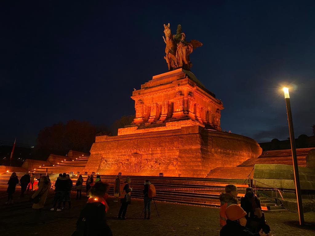 2021 erstrahlten auch in Koblenz und im Westerwald markante Gebäude in ORANGE, vom Deutschen Eck bis zum Köppel auf der Montabaurer Höhe. 2022 wird aus Energiespargründen darauf verzichtet.